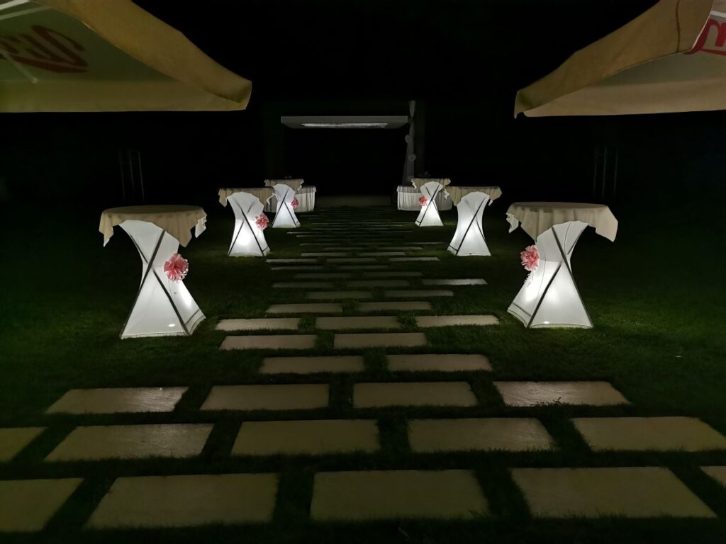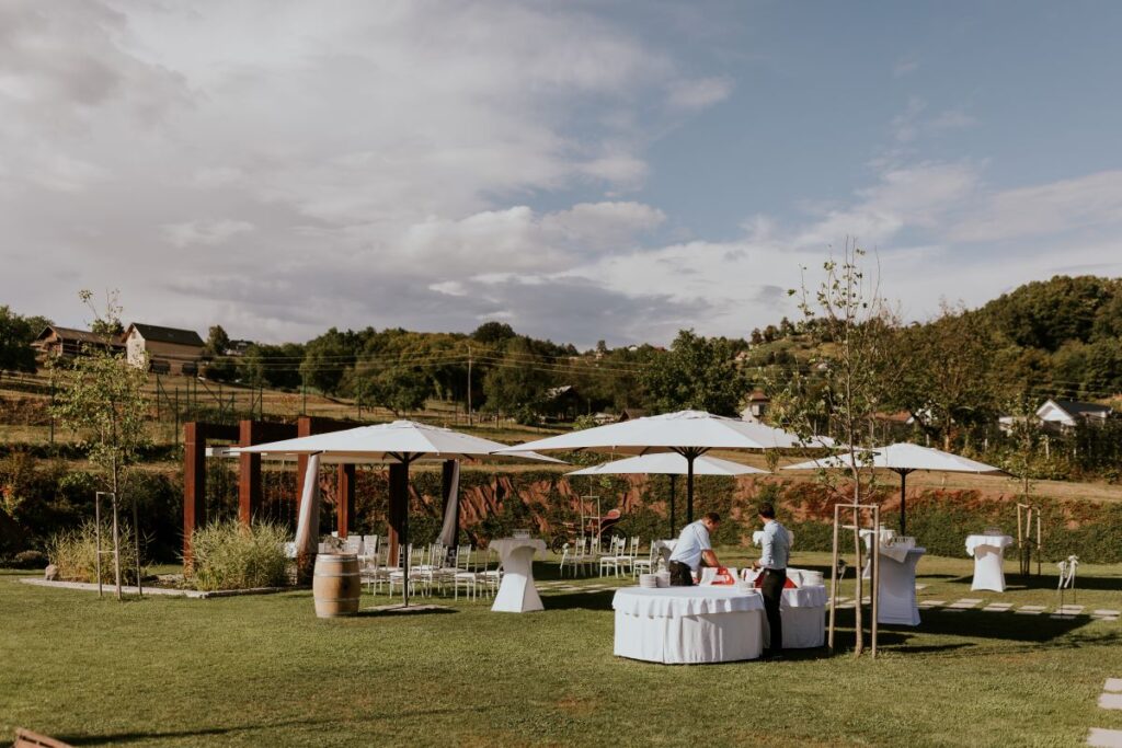 - Na zunanjem vrtu vam je na voljo prostor za civilni obred, osebje lahko poskrbi tudi za okrasitev prizorišča.